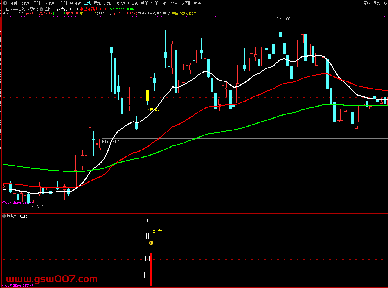 - 2025-10-18 通达信【腾蛇5号】主附图选股指标/ 尾盘阴买思路手机电脑通用