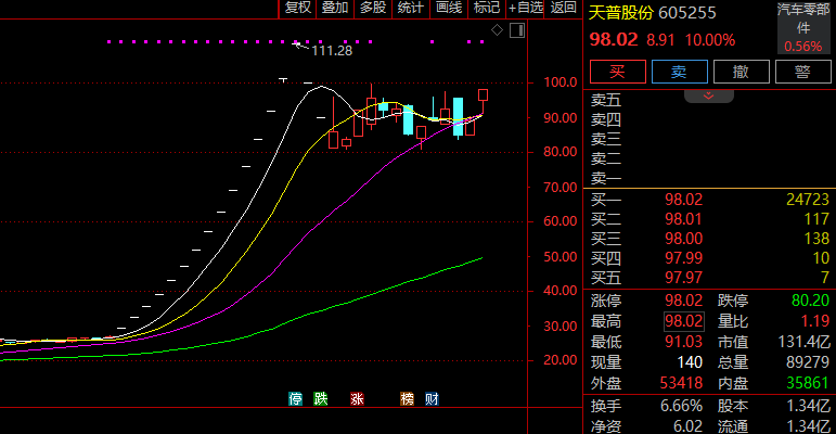 11月5日,“大牛股”天普股份(605255)再度涨停,截至收盘封单超2万手。