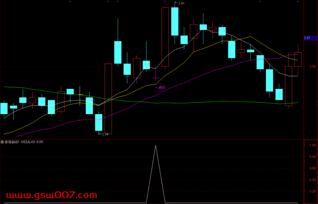 曾经有一天涨停,而且涨停那天股价冲过了5日、10日、20日、60日这4条均线(相当于强势冲破了多层压力)。