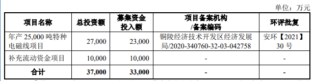 兢强科技拟在北交所募集资金33,000万元,用于年产25,000吨特种电磁线项目、补充流动资金项目。
