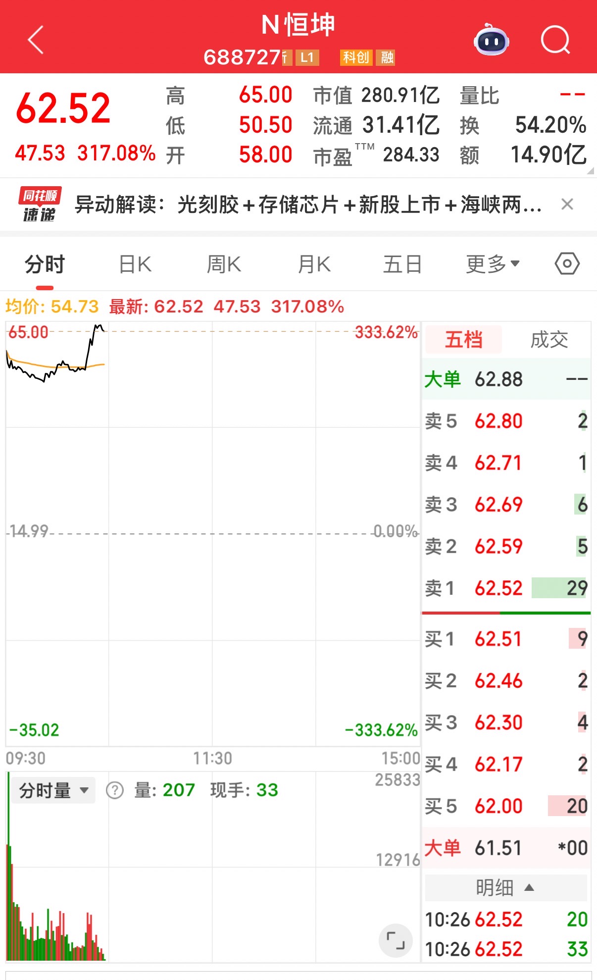 - 2025-11-18 一度涨超330%!光刻材料“小巨人”恒坤新材科创板敲锣