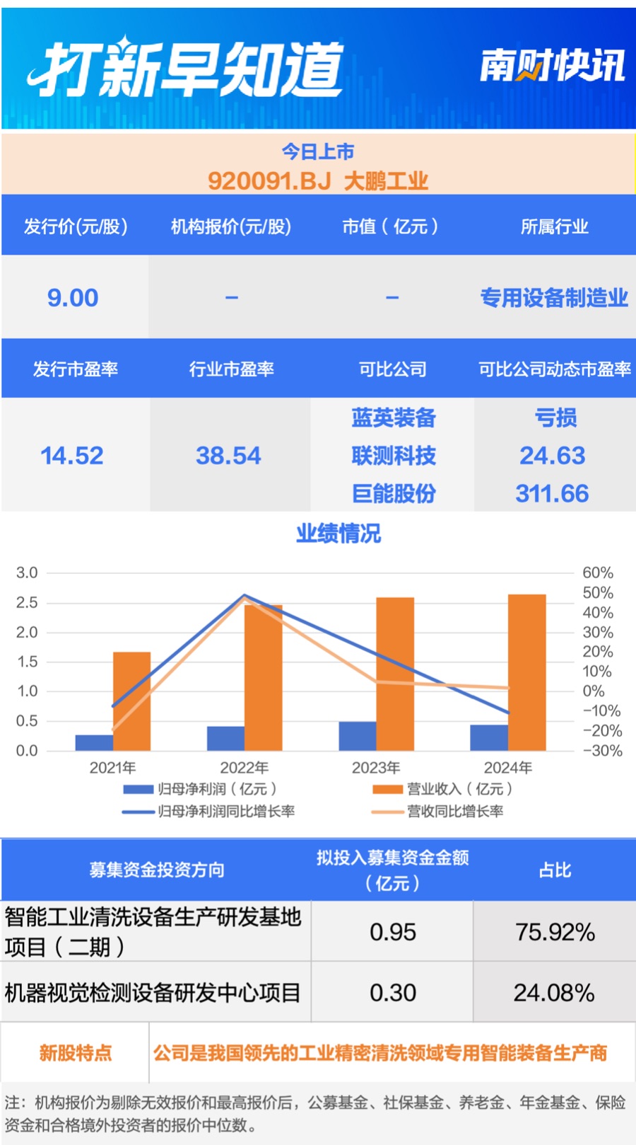 11月21日,可申购深市主板的中国铀业(001280)(001280.SZ),另有一只新股上市,为北交所的大鹏工业(920091.BJ)。