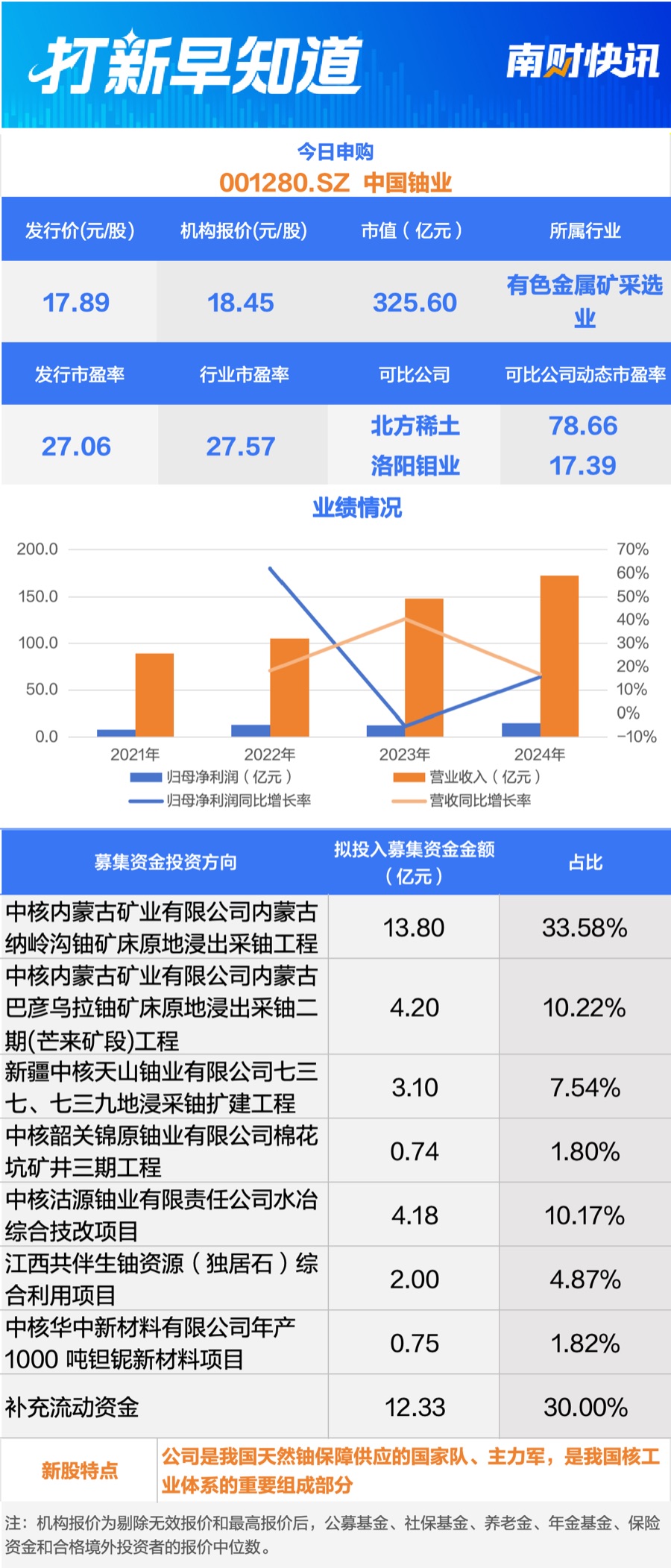 - 2025-11-21 铀业第一股,天然铀“国家队”今日申购,另一只新股上市