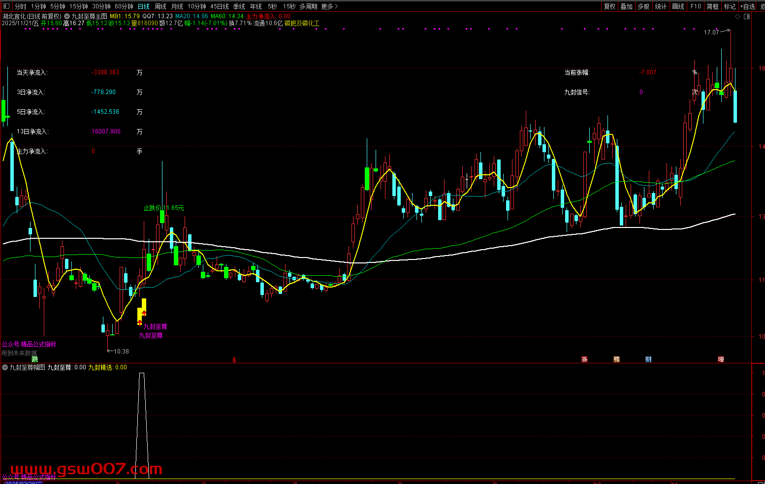 该指标同时支持主副图展示和选股公式调用,既能在行情图中直观查看信号与资金数据的联动,也能通过选股功能快速筛选出符合条件的标的,大幅提升交易效率。