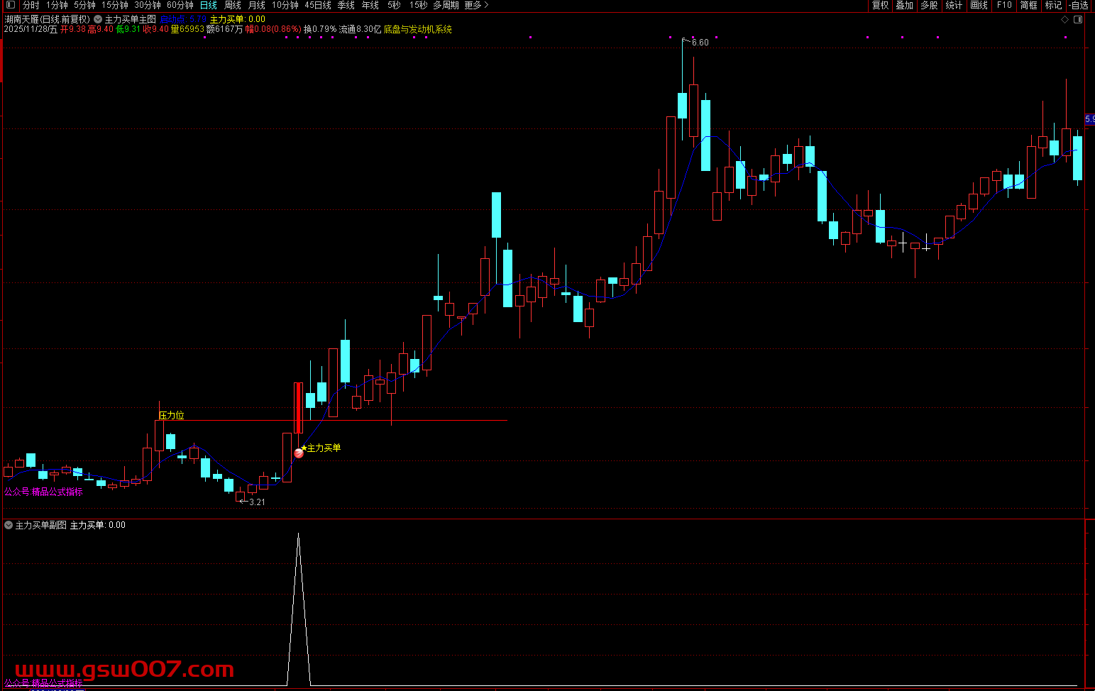 买入时机判断:当“主力买单”信号出现,且股价已有效突破标记的压力位(突破幅度建议≥1.5%),可作为首要买入参考时机。