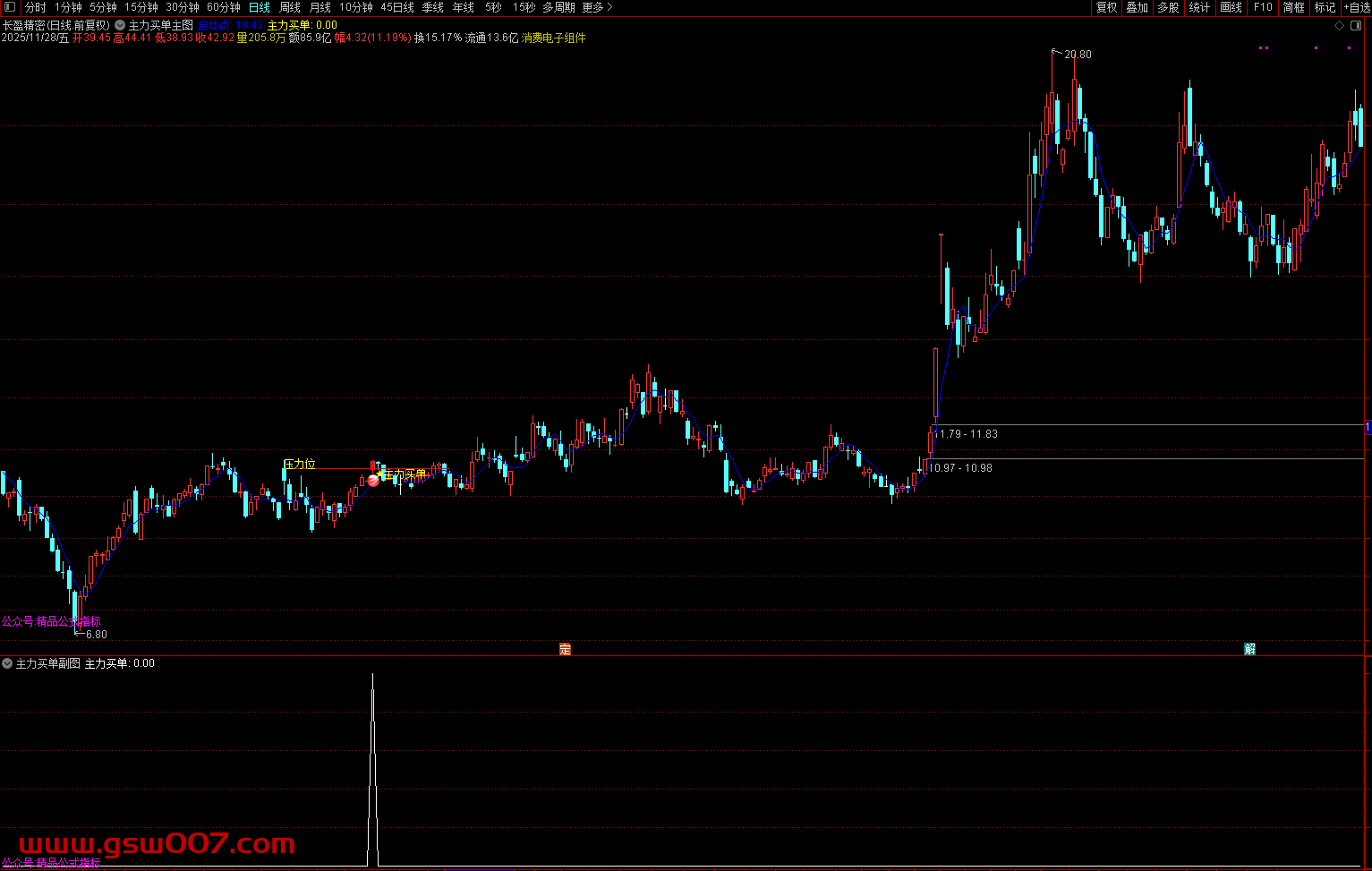 - 2025-11-29 通达信【主力买单】套装指标 识别主力资金介入的买入信号和关键压力位 源码