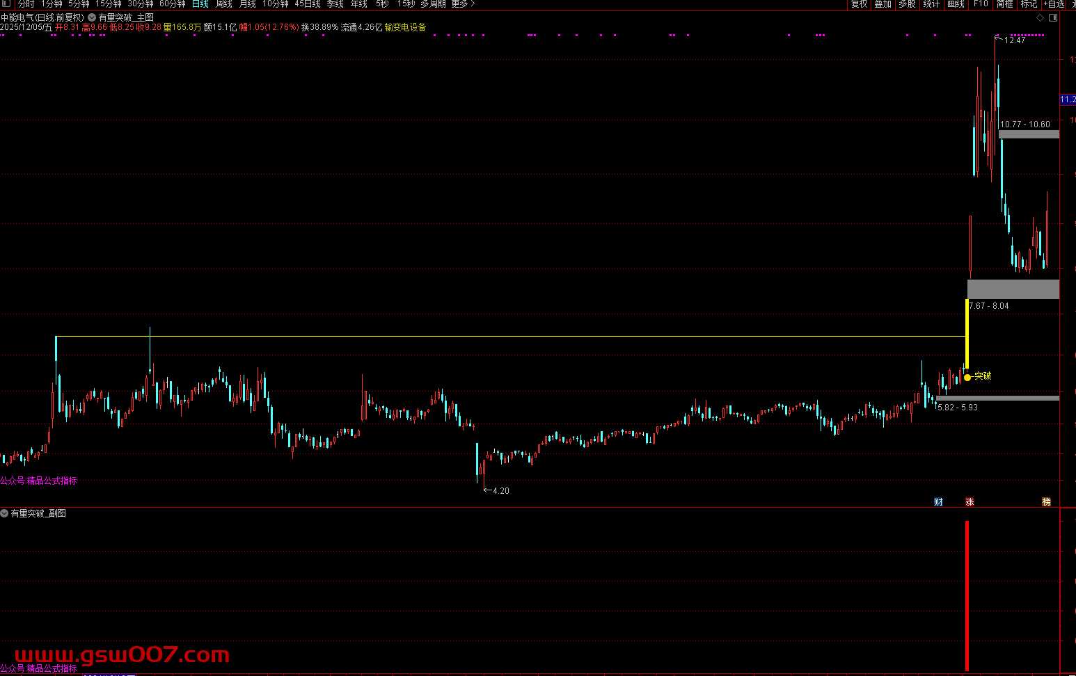 - 2025-12-06 通达信【有量突破】主图自带画线功能 突破前期重阴K线触发黄柱确认信号 源码
