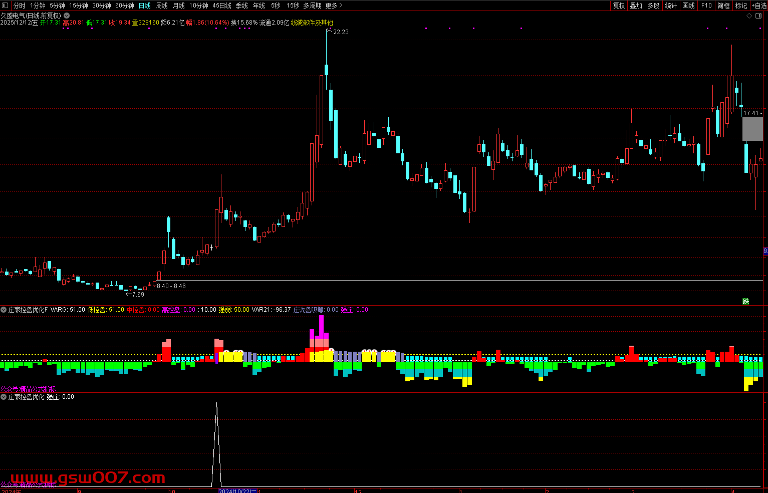 这款《庄家控盘优化版》副图指标,是笔者结合多款经典控盘类指标的核心逻辑,再聚焦成交量的动态变化规律,融入自身多年实战思考完成的优化升级。其核心关键在于对 “度” 的精准把控 —— 量能的释放与收缩、控盘力度的强弱,“度” 的拿捏本身就是一门实战性极强的学问,既离不开对市场规律的理解,更与长期积累的交易经验深度绑定,这也是该指标能贴合实战场景的核心原因。