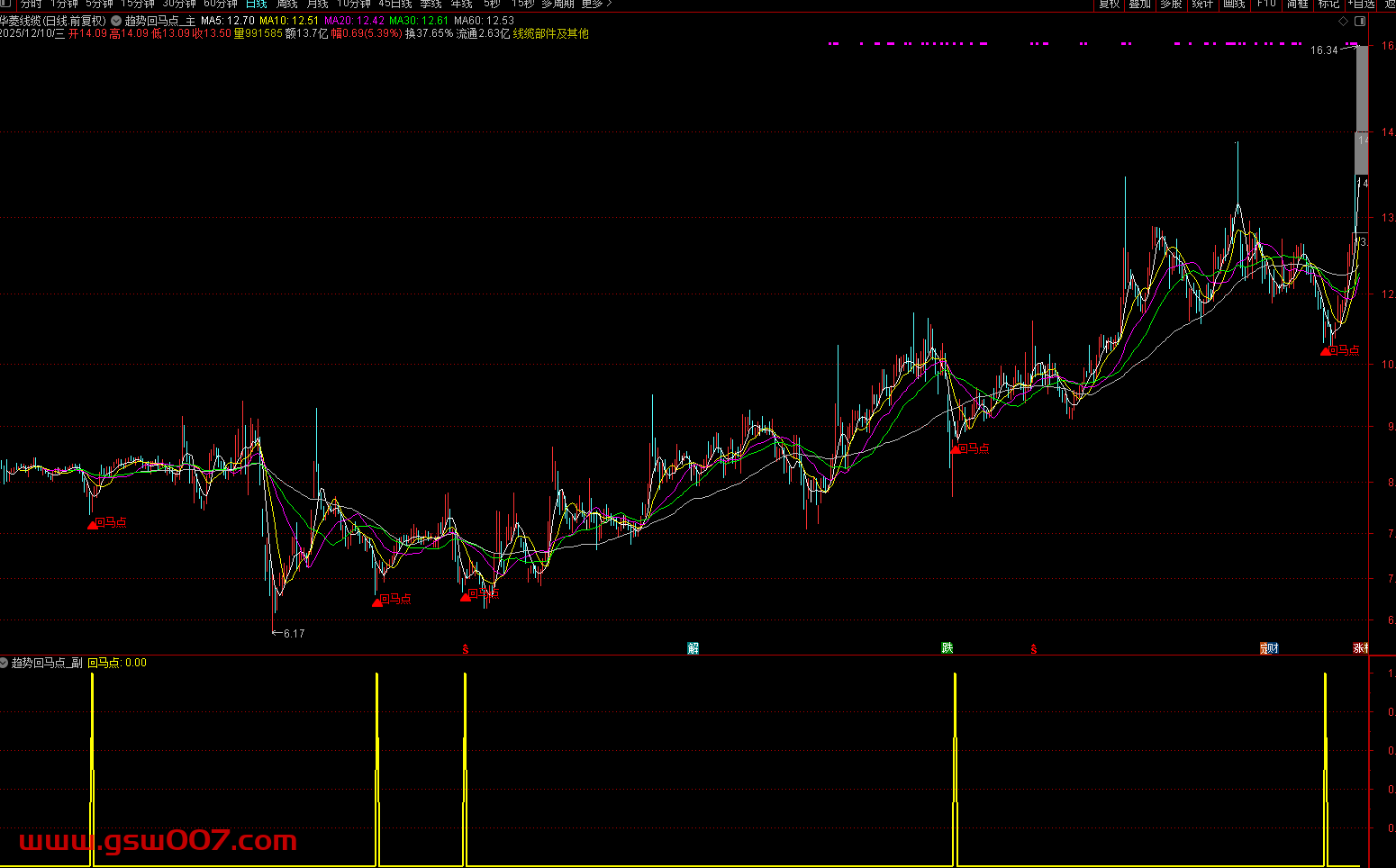 - 2025-12-13 通达信【趋势回马点】主副图 / 选股指标 尾盘 14:30 精准预警回调 “回马点” 手机电脑双端适配