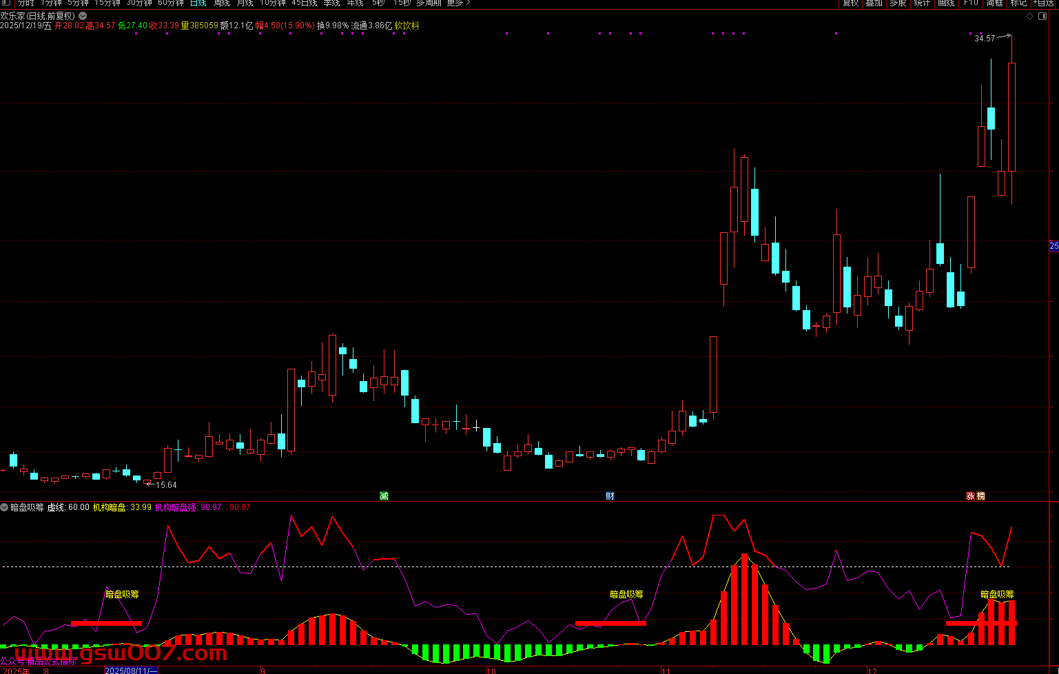 该工具通过 “机构暗盘强度” 数值的变化,为观察暗盘资金吸筹、拉升及撤离特征提供参考方向: