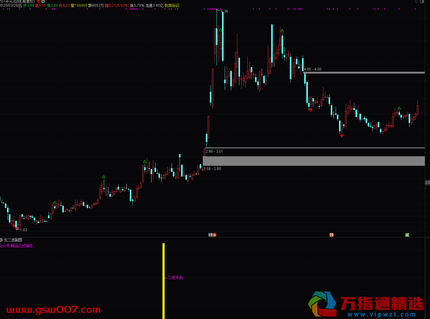 通达信【龙二波】副图 / 选股指标,专注于捕捉龙头回调后的二次启动信号。