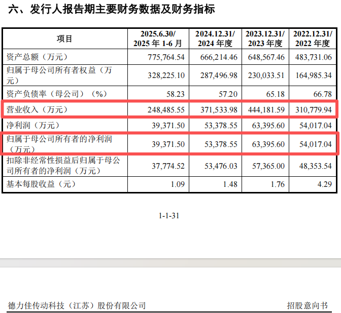 2022年至2024年及2025年上半年,德力佳的营业收入分别为31.08亿元、44.42亿元、37.15亿元及24.85亿元,归母净利润分别为5.40亿元、6.34亿元、5.34亿元及3.94亿元。