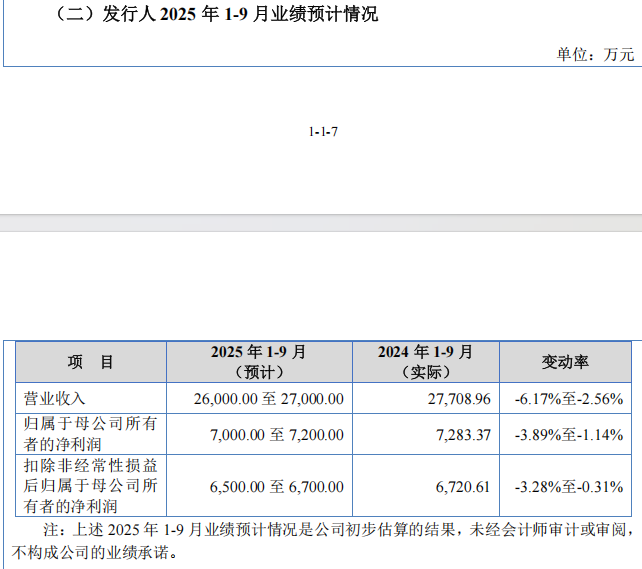 招股说明书显示,中诚咨询预计其2025年第三季度的营业收入为2.60亿元至2.70亿元,同比变动率为-6.17%至-2.56%;归母净利润为7000万元至7200万元,同比变动率为-3.89%至-1.14%。
