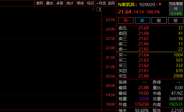 10月28日,泰凯英(920020)正式登陆北交所,开盘价19.05元/股,较发行价上涨154%,截至收盘,股价为21.64元,涨幅188.5%。