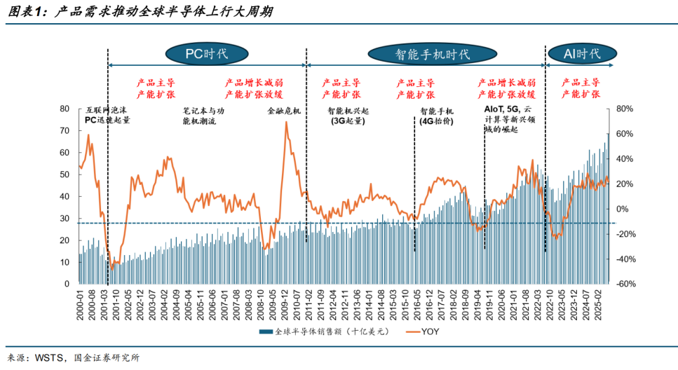 此外,国金证券复盘了前面几轮半导体周期,根据供需关系按照时间维度分为长中短三种周期:
