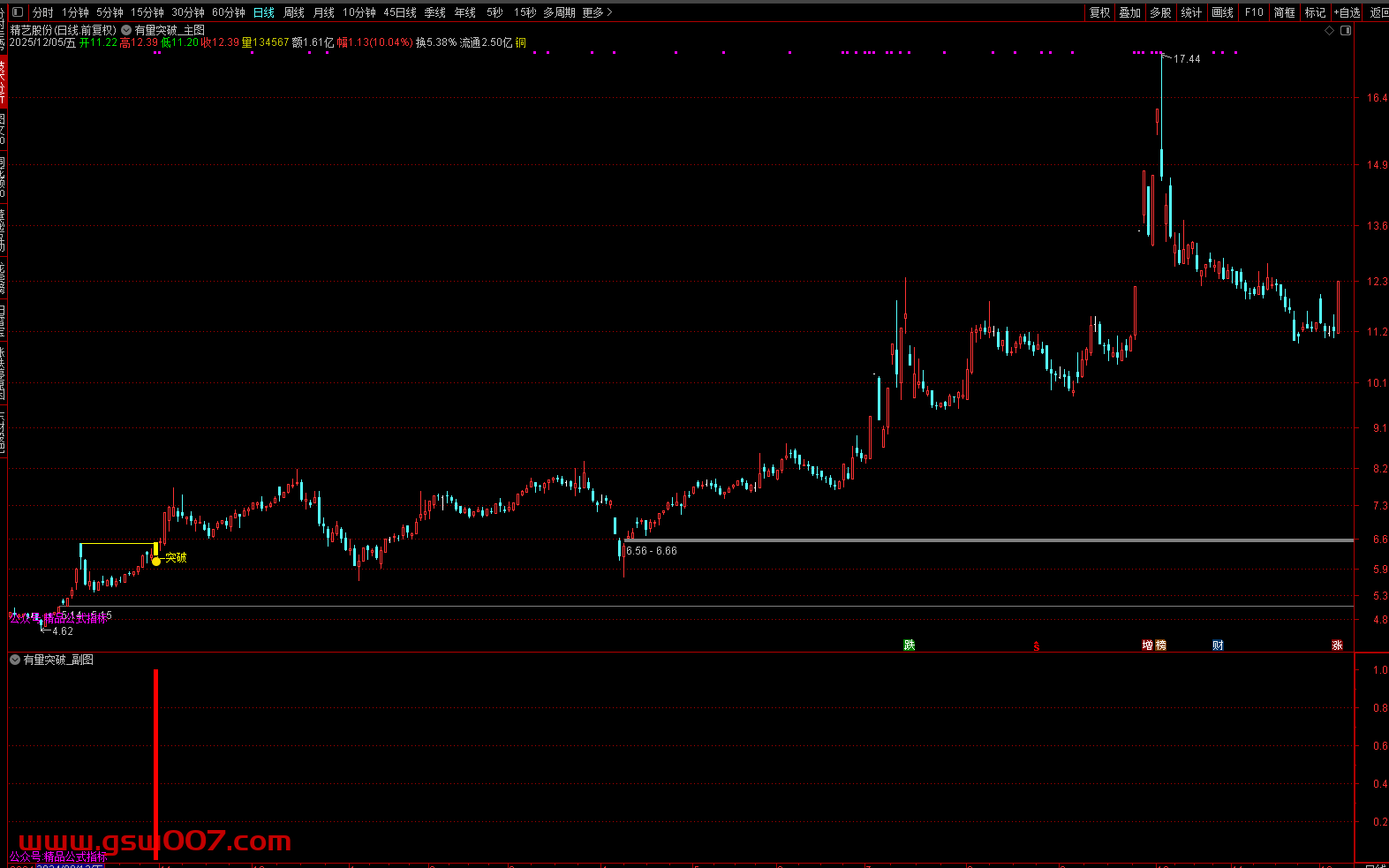 - 2025-12-06 通达信【有量突破】主图自带画线功能 突破前期重阴K线触发黄柱确认信号 源码