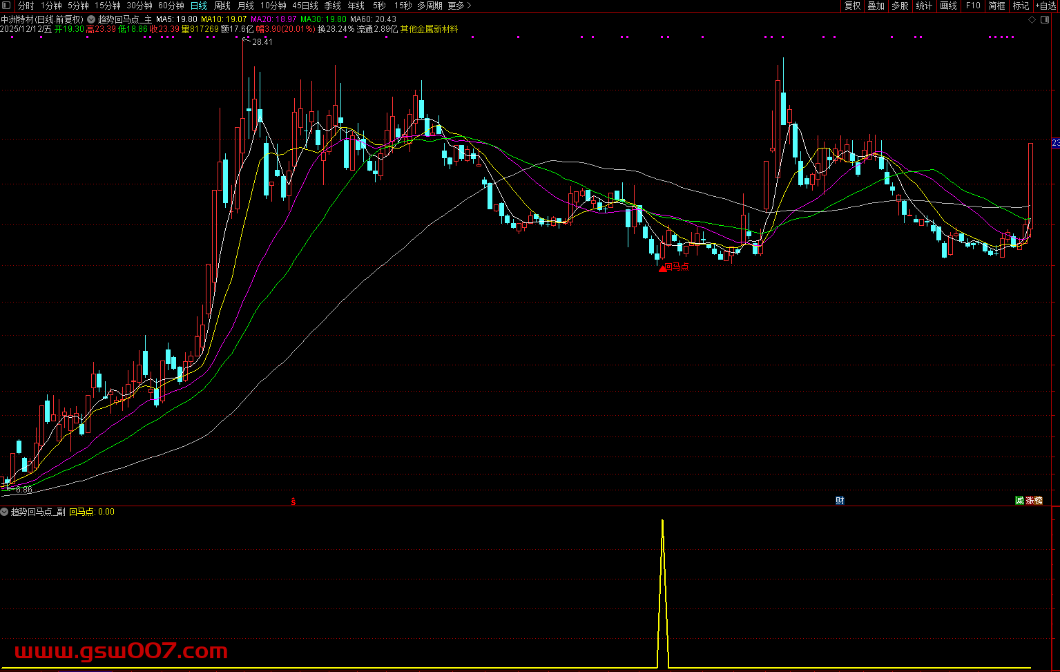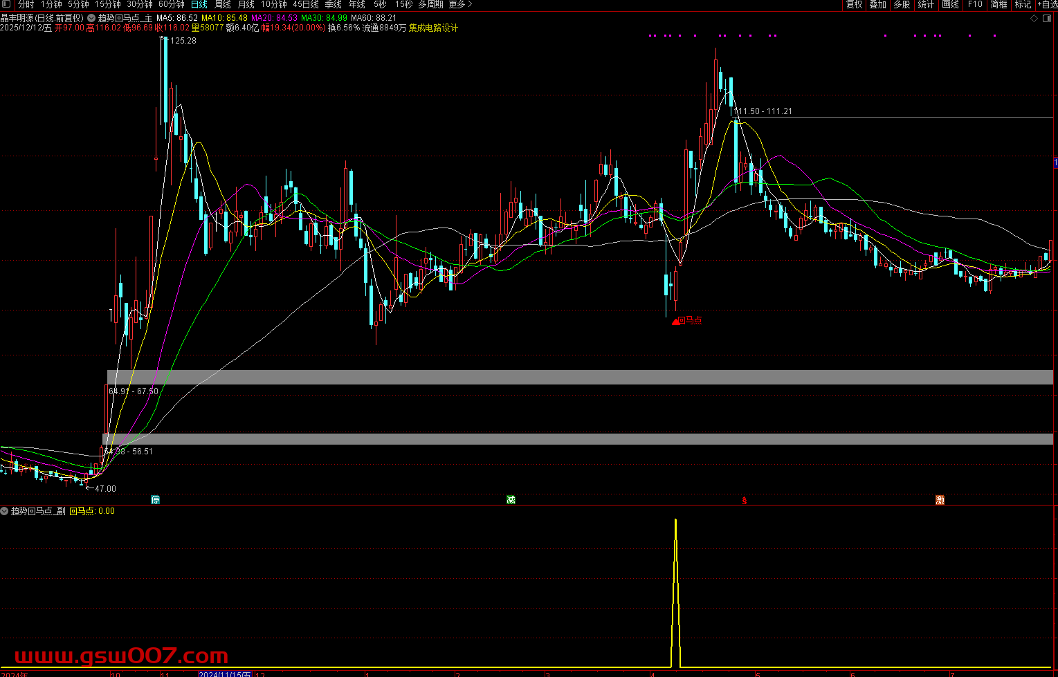 这款【趋势回马点】指标整合主图、副图、选股公式为三位一体的分析工具,核心优势在于每日尾盘 14:30 精准预警股价回调后的 “回马点” 机会,且支持手机、电脑双端使用,适配不同场景的交易分析需求。