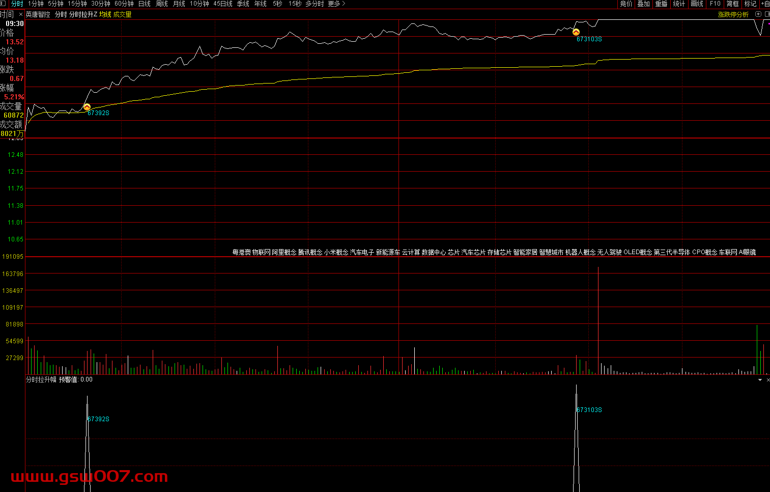 - 在界面右上角显示个股所属行业板块,便于观察板块属性。