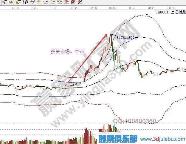 多头市场也就是牛市的另一个称呼,表示市场指数长期处于上涨的走势,股票的价格总体趋势不断地上涨,K线走势以红K线多绿K线少(大涨小跌),相信经历过牛市市场的投资者都有体会,这时候开户人数会出现激增,成交量每天都非常大,市场流动性比较强。除此之外,市场总体趋势中存在下跌的走势,不过是低点不断提高,买入股票